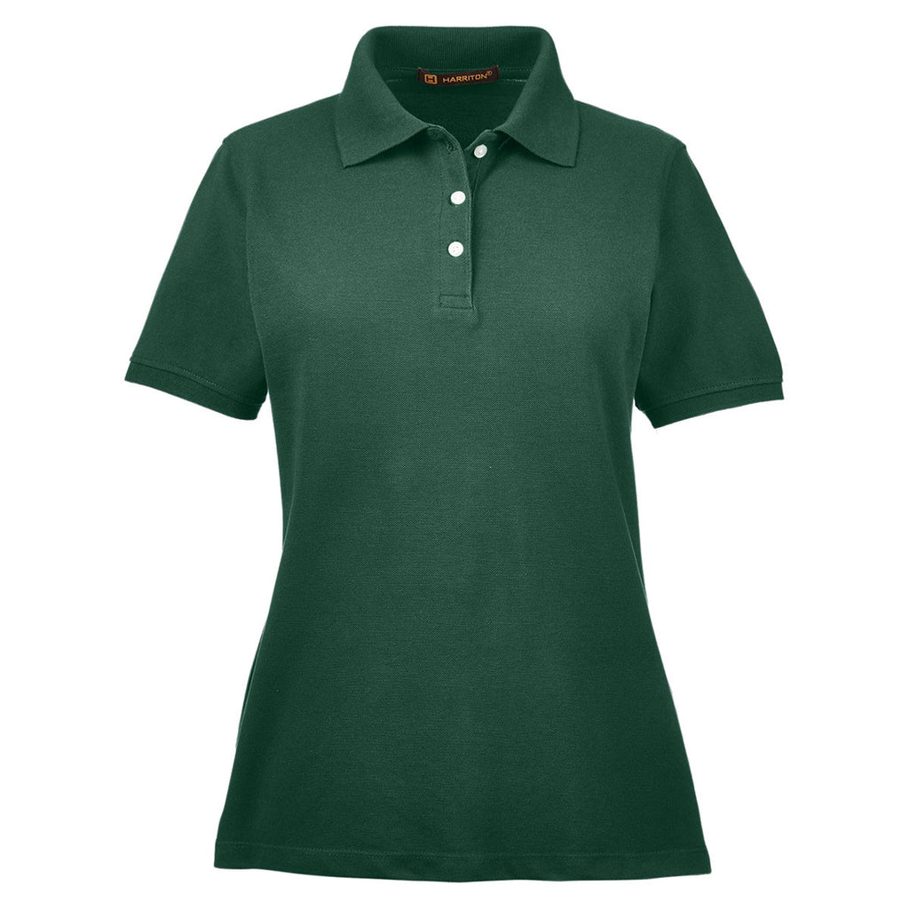 With a softly shaped design to create a more flattering feminine look, the Harriton Women's Hunter 5.6 oz. Easy Blend Polo is sure to turn heads at your next business seminar. The flat-knit collar and cuffs complement the three-button placket to produce a stylish polo to wear at the office, as well as outdoors working on home improvement projects. Blended cotton and polyester never wrinkles to keep you looking professional throughout the day. The silky soft fabrication reduces shrinkage to ensure maximum comfort for years to come. Attach a custom logo that attracts the interest of customer prospects.Corresponding Men's Style: Harriton Men's Hunter 5.6 oz. Easy Blend Polo