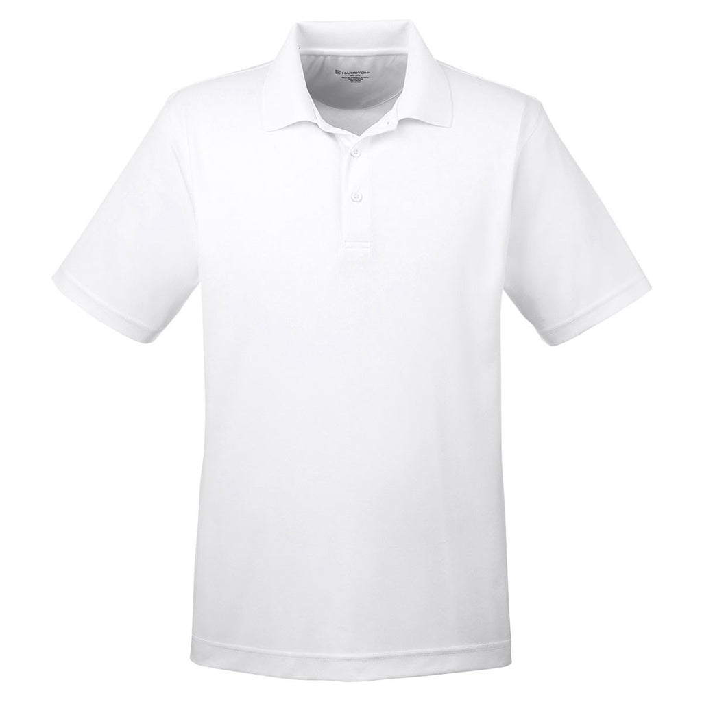 One-hundred rugged polyester prevents rips and tears from diminishing the fashion appeal of the Harriton Men's White 4 oz. Polytech Polo. Antimicrobial properties keep the polo looking and smelling fresh all day long. Quick to dry after a soaking rain, the sleek polo includes moisture wicking technology that cools the skin. Side seam stitches enhance durability, while the set-in sleeves offer a comfortable fit. The three-button placket and flat-knit collar present a professional appearance at formal corporate events. Attach your company logo on the large imprint area to heighten awareness of your brand in the community.Corresponding Women's Style: Harriton Women's White 4 oz. Polytech Polo