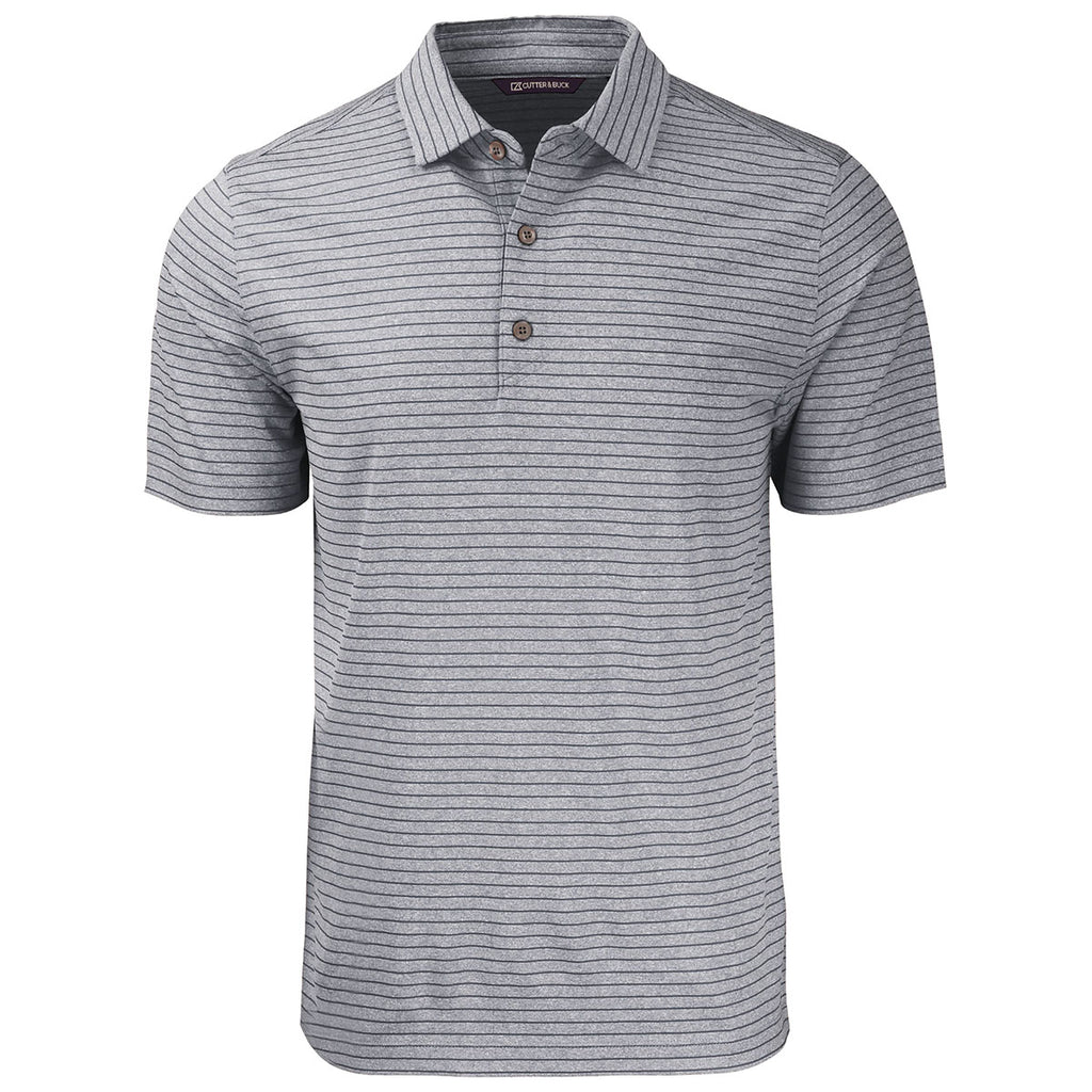 Cutter & Buck Men's Black Heather Forge Eco Heather Stripe Stretch Recycled Polo