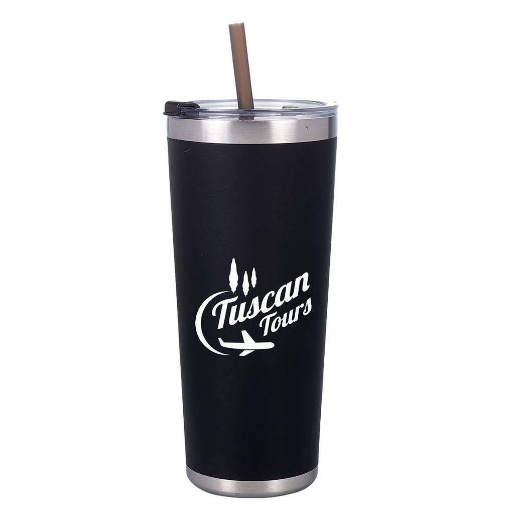 A stylish matte finish and bold color options makes the Primeline Black 20 oz. All Season Vacuum Tumbler a perfect piece to show off your company's custom printed logo or design. It features double-walled vacuum insulation, which will keep the liquid inside at an ideal temperature all day long.The minimum order for this product is 25 pieces.