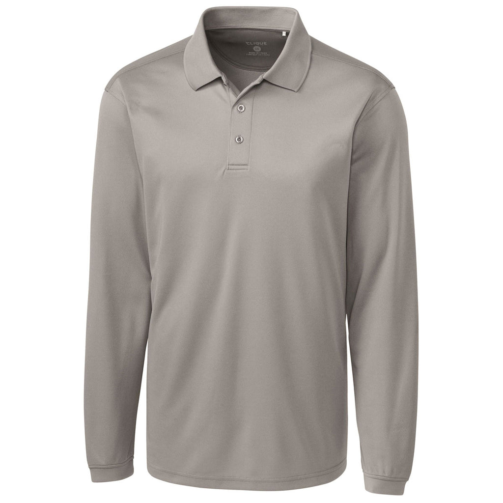 Raise the company apparel bar higher by making the versatile Clique Men's Silver Long Sleeve Ice Pique Polo the new employee uniform. The long sleeve shirt brings short sleeve polo panache, while delivering functionality by offering you the ultimate apparel for layering. Wear the long sleeve polo over a Clique tee or as the middle layer of a cold weather fashion ensemble. Moisture wicking fabric ensures the skin remains dry throughout the day. Tear away the label and add a custom logo on the embroidery area. Forward shoulders present a dignified look that will attract the attention of your professional peers.Corresponding Women's Style: Clique Women's Silver Long Sleeve Ice Pique Polo