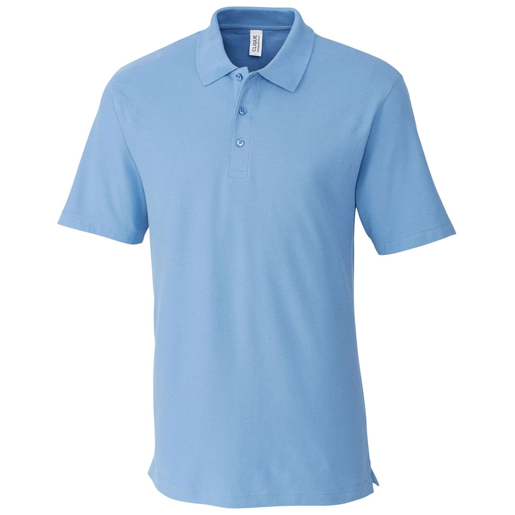 When you want stylish company apparel for the male members of your team, look no further than the multi-purpose Clique Men's Light Blue Addison Polo. The 100% cotton pique fabric makes the polo ideal for handing out at the next corporate sponsored golf tournament. Tear away the tag and add your company logo to create embroidery that potential customers will remember. The three-button placket creates a refined appearance to get you noticed at sales conferences. Rib knit sleeves and collar complement the attractive side vent and forward shoulder. The polo also works fashionably well at professional networking events.Corresponding Women's Style: Clique Women's Light Blue Addison Polo