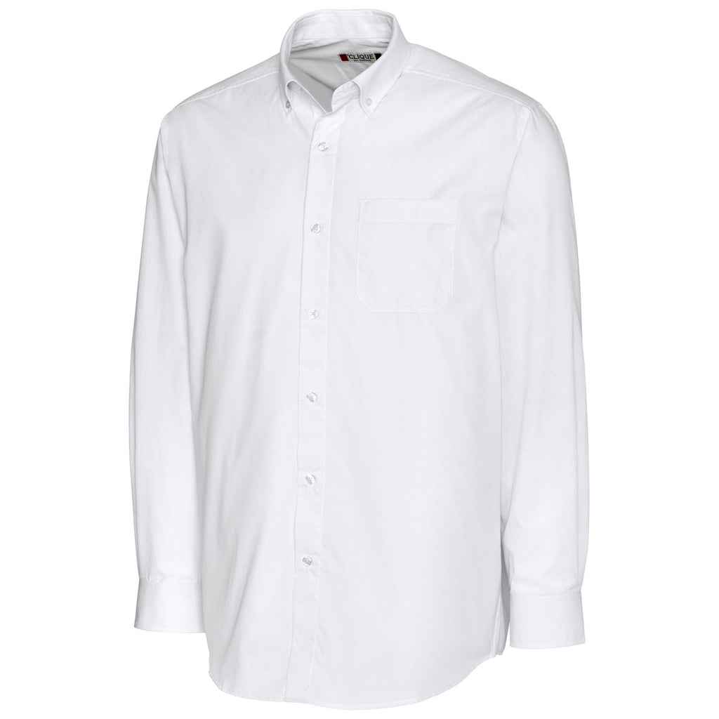 At the end of a busy day, the corporate logoed Clique Men's White Halden Stain Resistant Long Sleeve will look as sharp as it did when you put the stylish long sleeve shirt on in the morning. Yarn dye poplin prevents stains from diminishing the appearance of the button down shirt. Wash and dry the shirt as often as you like and never have to deal with unsightly wrinkles. Super soft cotton blends with incredibly strong polyester to ensure you enjoy wearing a professional looking shirt for every important social and business event. Attach a custom logo on the large embroidery area to create interest in your company.Corresponding Women's Style:Clique Women's White Halden Stain Resistant Long Sleeve