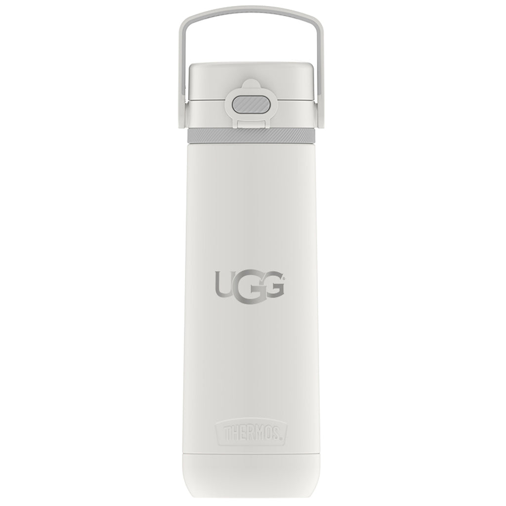A Thermos White 16 oz. Guardian Collection Stainless Steel Direct Drink Bottle is ready for adventure with a custom logo. The stainless steel interior and exterior mean drinks stay hot for 10 hours or cold for up to 24 hours in this vacuum insulated bottle. The drink bottle is equipped with a smooth flow lid with locking cap and carry handle which makes it perfect for your outdoor adventure or morning commute. Add a company logo to use as a customer giveaway or to draw in potential customers at a trade show. Place your order today, these are too perfect to pass up.The minimum order for this product is 12 pieces. Must be ordered in increments of 12.