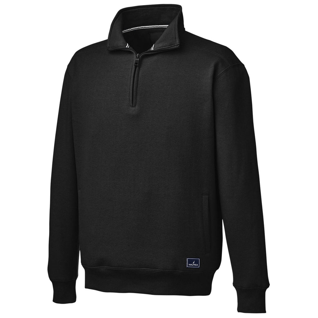 Relax and enjoy a custom embroidery Nautica Men's Black Anchor Quarter-Zip Pullover with your custom logo proudly displayed. This simple pullover means you can easily layer over whatever you choose and still create a professional look that can serve as part of a corporate uniform for employee events or just to wear on more relaxed days or special events. The cotton polyester fleece blend is soft with a striped neck tape, ribbed cuffs and hem, and welt handwarmer pockets for when the weather turns chilly.