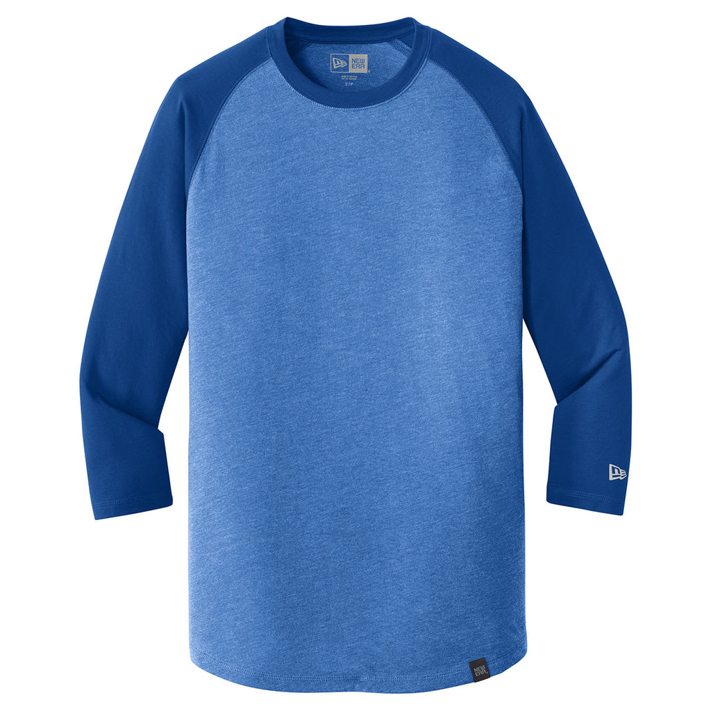 For a major league look, put on the rugged New Era Men's Royal/Royal Heather Heritage Blend 3/4 Sleeve Baseball Raglan Tee. When you slide safe into second base, the 40% polyester fabric resists rips and tears to give you several league seasons of high performance use. Back and shoulder yoke color blocking delivers a visually attractive appearance. Raglan sleeves and a shoulder darting shape help increase mobility for both arms. The extra mobility comes in handy when you need to let it rip at the plate. Add a custom logo on the large imprint area for expanding your company's presence at civic and professional networking events.
