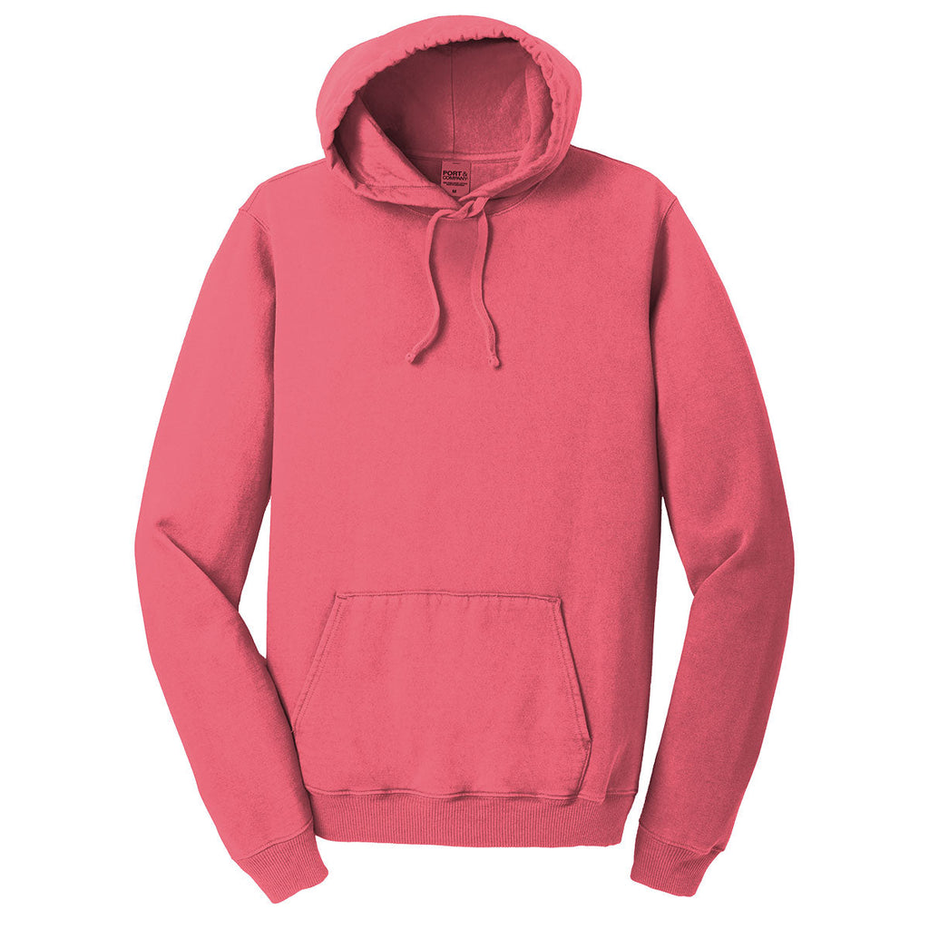Port & Company Unisex Fruit Punch Beach Wash Garment-Dyed Pullover Hooded Sweatshirt