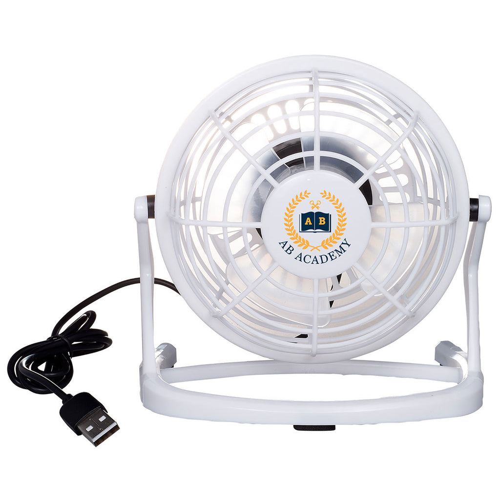 The Primeline White USB Powered Desk Fan is a unique office accessory that will make an unforgettable giveaway item at your next trade show or recruiting event. A rotating head means you can customize the direction of the airflow, while sleek colors will make your brand's custom logo pop.The minimum order for this product is 50 pieces.