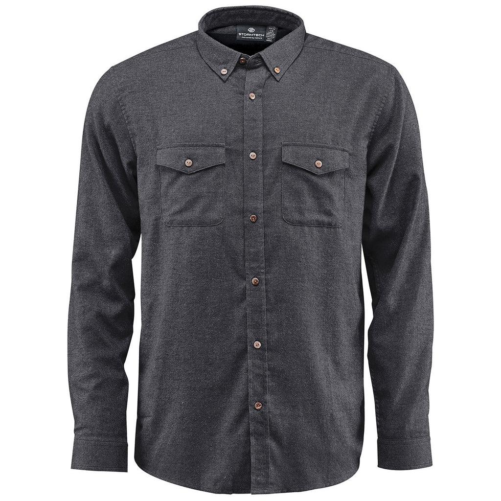 Show off your style in a custom Stormtech Men's Charcoal Cambridge Long Sleeve Shirt made of premium easy-care cotton-poly woven flannel. Add embroidery to the long sleeve shirt for a look that can easily be used as employee apparel in many settings or as an addition to your personal wardrobe. Try out a custom logo to give as gifts or get your logoed apparel line started. Made for casual wear with a tailored collar and curve hem design, this shirt will go anywhere you choose. Great as workwear or to wear on the weekends.Corresponding Women's Style:Stormtech Women's Charcoal Cambridge Long Sleeve Shirt