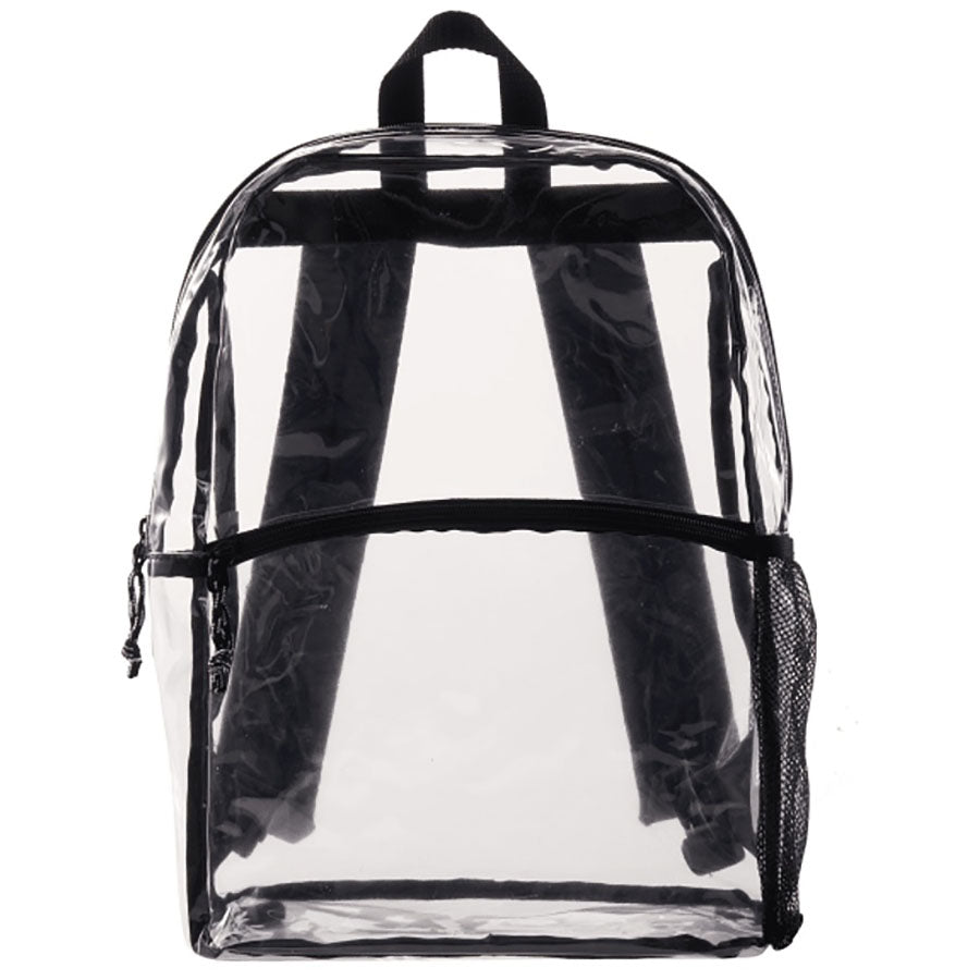Its lightweight design ensures comfortable wear, even during extended use. An integrated mesh water bottle pocket keeps you hydrated on the go, while adjustable, padded shoulder straps and a top grab handle offer versatile carrying options. Perfect for navigating secure venues with ease, the Vue Clear PVC Backpack combines practicality with sleek design. Order today to offer your clients a sleek, compliant solution that ensures both style and accessibility!
