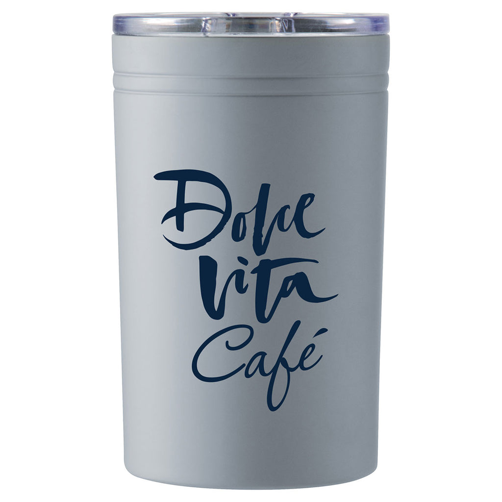 The vacuum insulated Bullet Grey Sherpa 11oz. Vacuum Tumbler & Insulator keeps drinks cold or hot throughout the day. Your custom logo printed on its body will stay intact no matter what goes inside the tumbler. Add this tumbler to your list of giveaway items for your employees during special events or hand them out as a promotional tool at recruiting events.The minimum order for this product is 50 pieces.