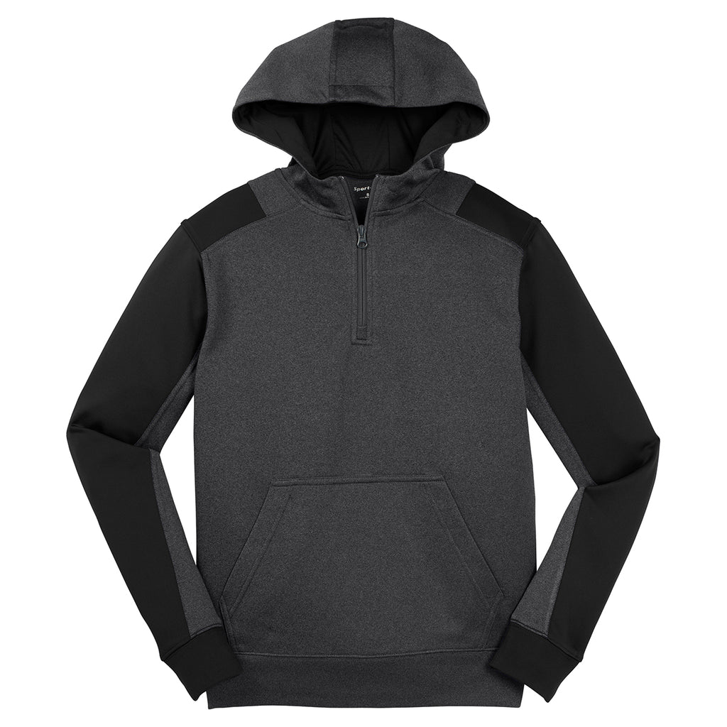 When the mercury goes down, your layering needs to go up. You know what we mean by layering, right? Take the Sport-Tek Men's Graphite Heather/Black Tech Fleece Colorblock 1/4-Zip Hooded Sweatshirt. This is a comfortable and durable layering item that you can use to gift your employees with warm and fashionable clothes to wear around the workplace. Just add your custom logo to the front and you've created something branded specifically to your company.Highlights
