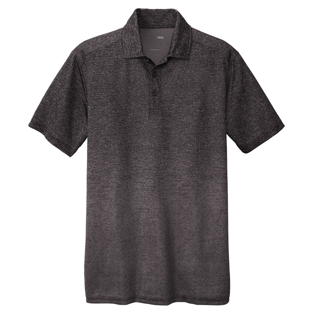 Designed with an allover sublimated print to create an innovative twist on traditional athletic colors, the company logoed Sport-Tek Men's Iron Grey/Black Ombre Heather Polo sets the standard for versatile polos. Attach a custom logo on the large imprint area to leave a lasting positive impression on the potential customers you interact with at industry trade shows. Snag resistant to prevent tearing, the sleek polo includes a self-fabric collar and open hem sleeves. Side vents encourage the circulation of air to cool the body when the competition heats up. Moisture wicking technology keeps the skin comfortably dry all day long. Switch up the usual corporate apparel with this ombre polo from Sport-Tek.Highlights