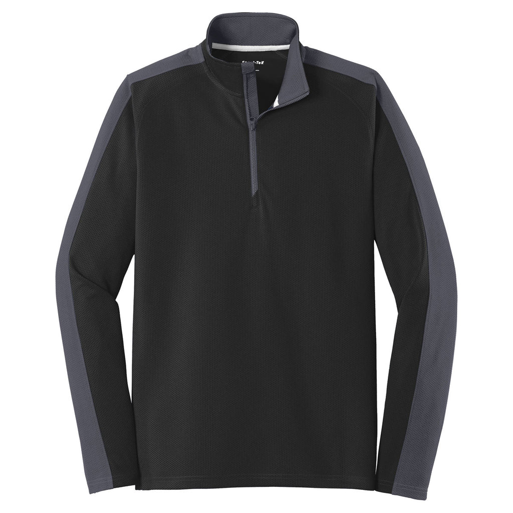 Sport-Tek Men's Black/Iron Grey Sport-Wick Textured Colorblock 1/4-Zip Pullover