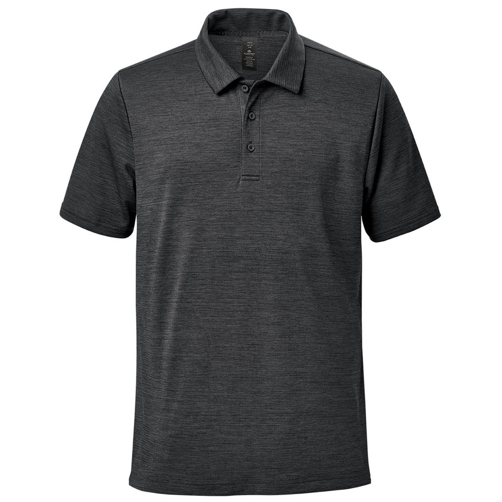 Ideal for athletes and professionals alike, the Stormtech Men's Charcoal Mix Torrente Short Sleeve Polo will keep your team feeling comfortable no matter the situation. Add your company's custom logo or design to create a branded polo that always looks crisp, clean, and classic. It's also made from recycled fabric, making it great for eco-friendly brands.