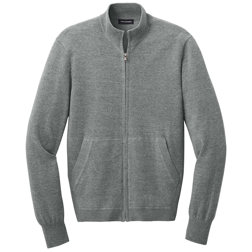 Port Authority Men's Medium Heather Grey Easy Care Full-Zip Sweater