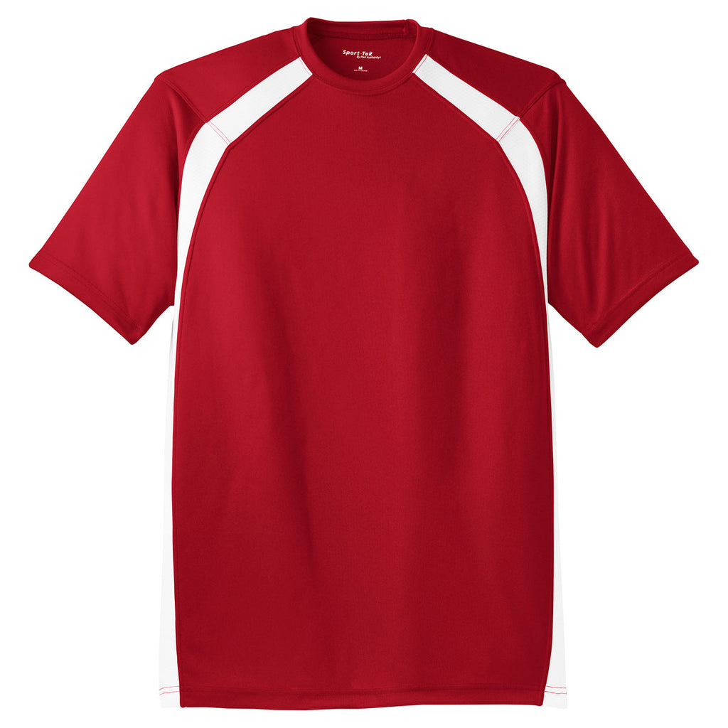 There is a 12 piece minimum on all orders for Sport-Tek t-shirts. This item will be imprinted, not embroidered.Is there anyone who doesn't like a good T-shirt? If so, we haven't met them. This Sport-Tek Men's True Red/White Dry Zone Colorblock Crew is an especially astute choice. But T-shirts aren't all about the clothing on your backodd as it might sound to saybecause they can also help your company create some corporate apparel that people will love. By giving them to employees or as giveaways, you can use them to promote your brand and spread the word about specific events. Or you can wear them. That's fine too.