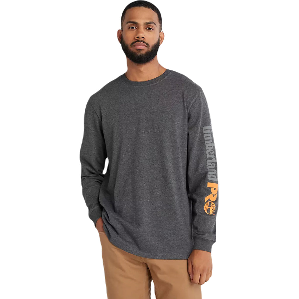 Timberland Men's Deepest Grey Heather Core Logo Long-Sleeve T-Shirt