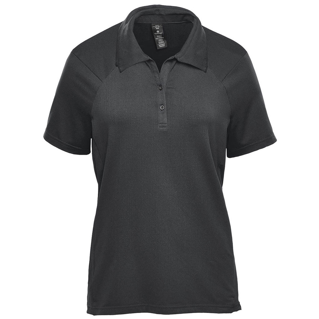 Create a custom look with Stormtech Women's Graphite Camino Performance Short Sleeve Polo with two button placket for a stylish look and feel. Add a company logo to the ultra-soft jersey fabric made of sustainably recycled polyester to create uniforms or employee gifts that can be worn at home, at special events, or trade shows. The moisture management technology keep you comfortable whether working a double shift of playing a round of golf with friends. Wear alone or layer to a more custom look. This shirt is great for a personal wardrobe, but also serves well as corporate apparel, truly doing it all. Place an order today.Highlights