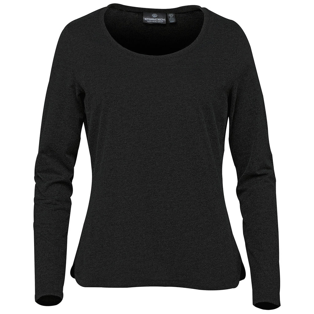 Keep it simple with a screen print Stormtech Women's Black Torcello Long Sleeve Tee that will work as hard as you do each day. Though this long sleeve tee scream for fun and adventure, it can easily be paired with a jacket or layered for a more upscale look. Add a company logo to use as employee apparel that will work hard and last for a long time. The simplicity of this long sleeve tee is what makes it alluring for wearers as a wardrobe staple. Wear year round alone or with your other favorite piece to create your own custom look.Corresponding Men's Style:Stormtech Men's Black Torcello Long Sleeve Tee
