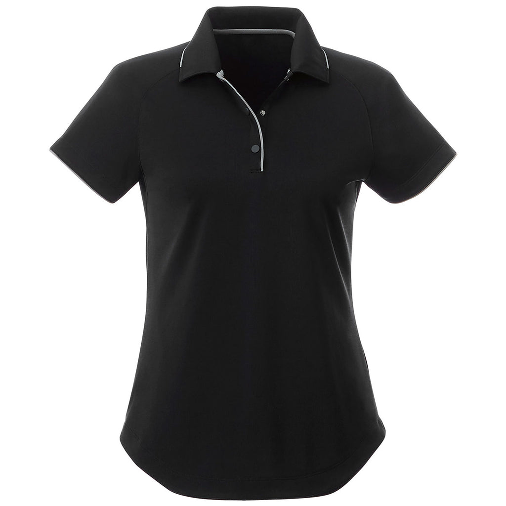 The logoed Elevate Women's Black/Quarry Remus Short Sleeve Polo offers claShort Sleeveic style in six different trendsetting color options. The polyester double knit fabric has a matte finish with wicking capabilities, constructed to keep the wearer as cool and comfortable as can be. Other enticing features of this must-have embroidery logo polo shirt include snap closures, shaped seams and a tapered waist for a perfect fit. Add a corporate or company logo to the polo shirt and make it a part of the company apparel for casual days at the office, and anytime outside of the office. It also makes a great company giveaway item for recruiting events and trade shows.Corresponding Men's Style: Elevate Men's Black/Quarry Remus Short Sleeve Polo
