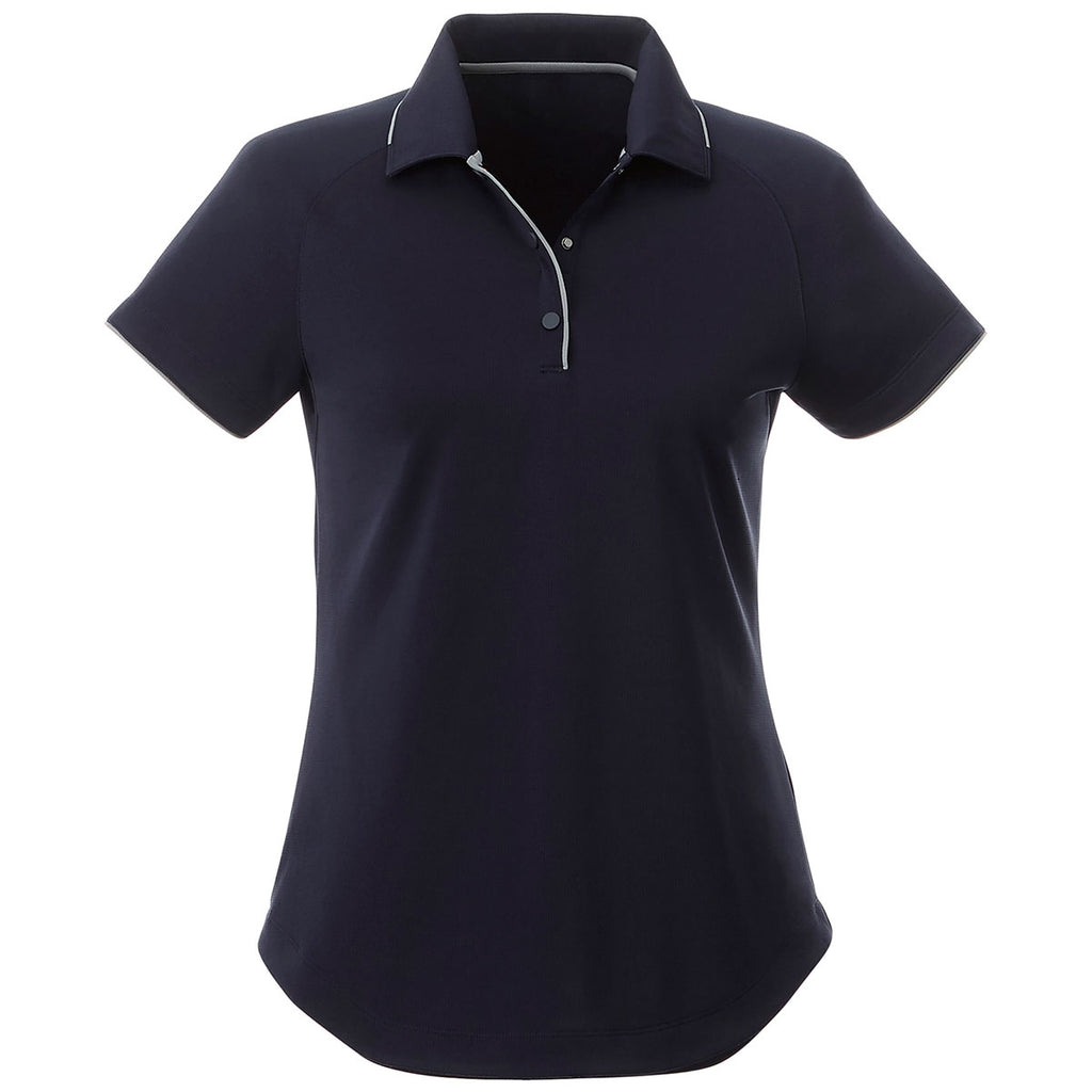 The logoed Elevate Women's Vintage Navy/Quarry Remus Short Sleeve Polo offers claShort Sleeveic style in six different trendsetting color options. The polyester double knit fabric has a matte finish with wicking capabilities, constructed to keep the wearer as cool and comfortable as can be. Other enticing features of this must-have embroidery logo polo shirt include snap closures, shaped seams and a tapered waist for a perfect fit. Add a corporate or company logo to the polo shirt and make it a part of the company apparel for casual days at the office, and anytime outside of the office. It also makes a great company giveaway item for recruiting events and trade shows.Corresponding Men's Style: Elevate Men's Vintage Navy/Quarry Remus Short Sleeve Polo