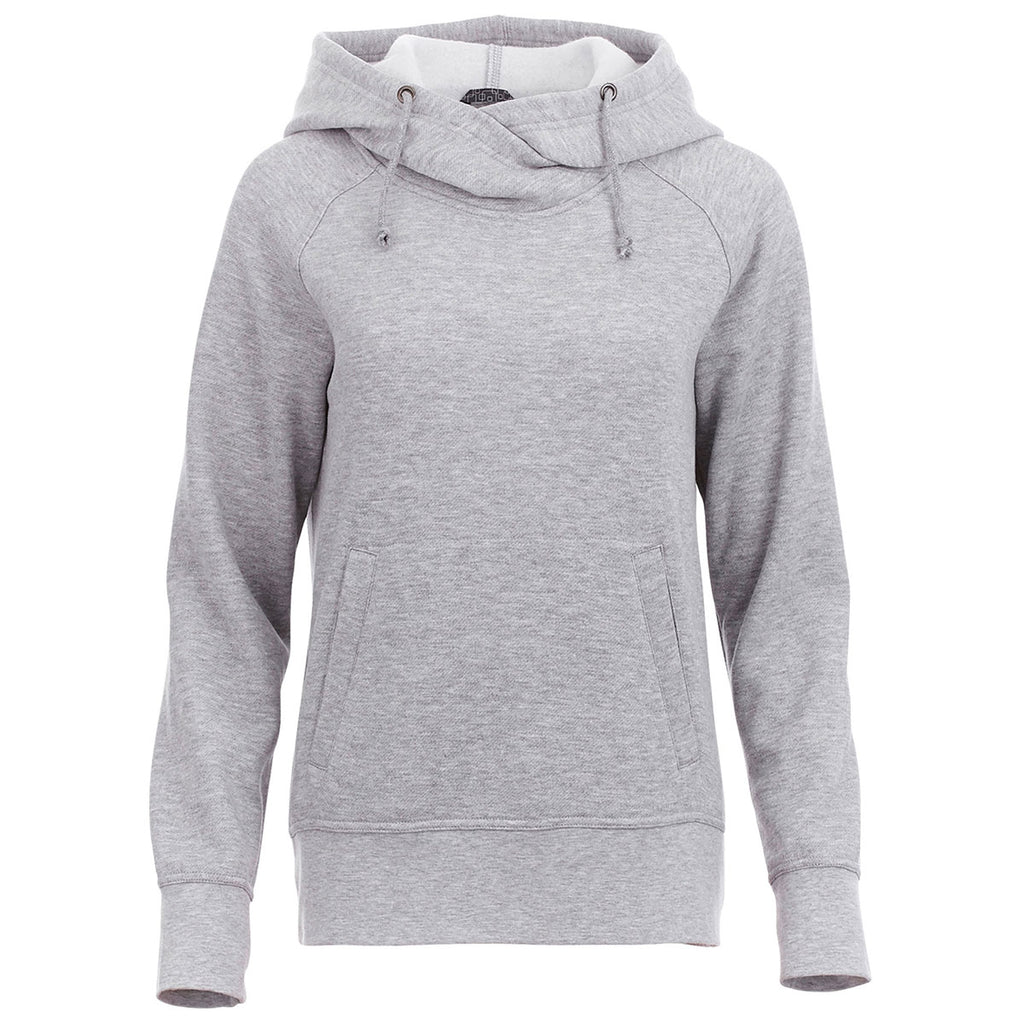 The custom Elevate Women's Heather Grey Dayton Fleece Hoody, with its comfortable fleece material, offers cozy warmth sure to please. With ten exceptional colors to choose from and must-have features including crossover neckline style, comfortable cotton/polyester blend, large front pocket and thumb holes, you're going to want to wear this hoody time and time again. Add your embroidery company logo to the sweatshirt and you have company apparel which will be high in demand. This soft and warm trendsetting hoody makes the ideal company gift to hand out to employees for corporate apparel wear.Corresponding Men's Style:Elevate Men's Heather Grey Dayton Fleece Hoody