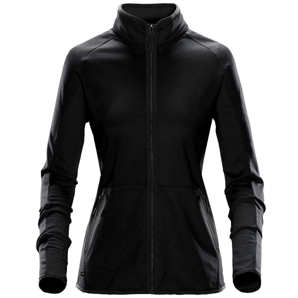 The Stormtech Women's Black Mistral Fleece Jacket is the lightweight jacket your team would be happy to make part of their employee apparel uniform. The lightweight fabric features H2X-DRY technology, which wicks moisture away from the skin, helping to regulate body temperature and keep the wearer warm, dry and comfortable. With articulated shoulders and polyester/spandex blend fabric, this jacket will stretch when you do, but not wear out. Finished with split kangaroo hand pockets and plenty of room for custom company logo embroidery, this jacket is sure to become a cold weather favorite.Corresponding Men's Style: Stormtech Men's Black Mistral Fleece Jacket