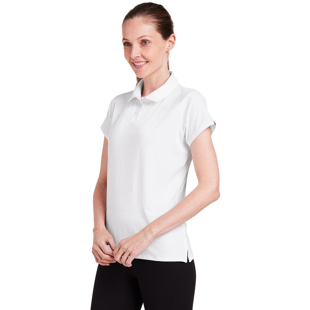 Design a corporate logo for the tasc Women's White Air Lightweight Polo for a simple uniform idea that will last for several seasons. The lightweight polo is moisture-wicking and easy to wear with a semi-fitted silhouette. Perfect for servers, maids, and those who are public-facing and need to look well-kempt and professional.Corresponding Men's Style: tasc Men's White Cloud Lightweight Polo