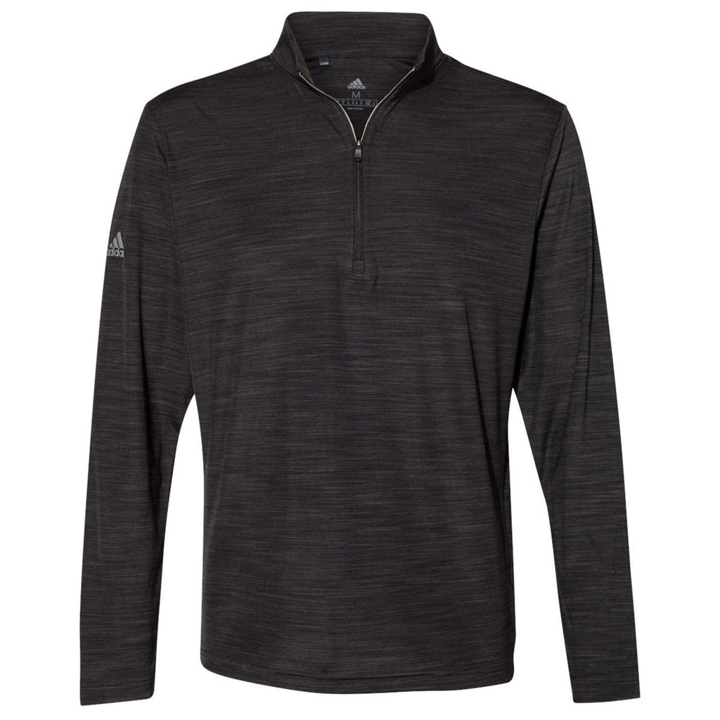 Create a unique custom look with the Adidas Men's Black Melange Lightweight Quarter Zip. This sleek lightweight quarter zip is made of 100% recycled polyester interlock knit for an easy to wear design that will be a big hit. Whether adding a custom logo and using as part of athleisure apparel for a team event or a company embroidery to use as an employee gift, this pullover is a must have. The moisture wicking material with a UPF 50+ rating is perfect for enjoying the outdoors while hiking, biking, or hanging out with friends.