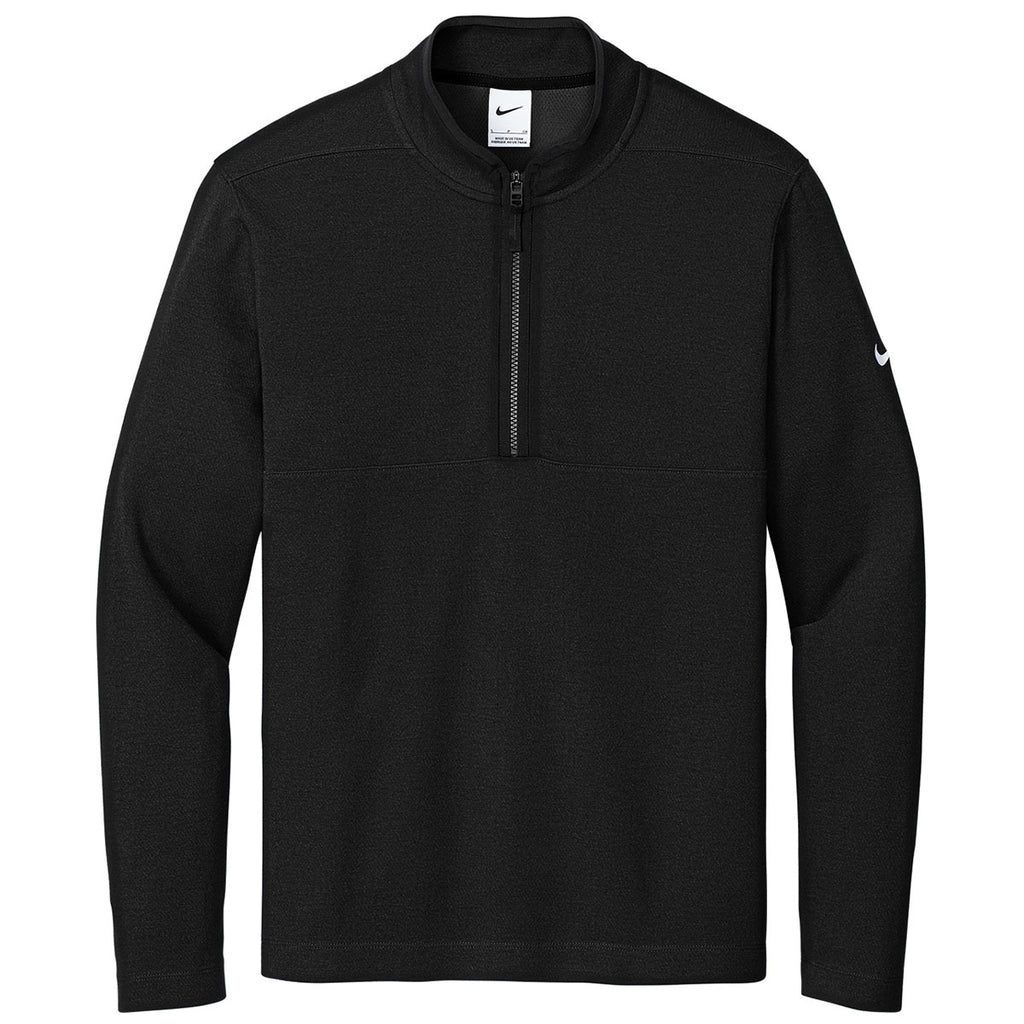 Add a custom logo to the Nike Men's Black Textured 1/2 Zip Cover-Up for a simple yet versatile layering option that is fun and easy to wear. The breathable, slightly brushed fabric is lightweight while keeping you warm for evening adventure. Use as company-wide apparel or add to your personal logoed apparel line.This product cannot ship outside of the United States.