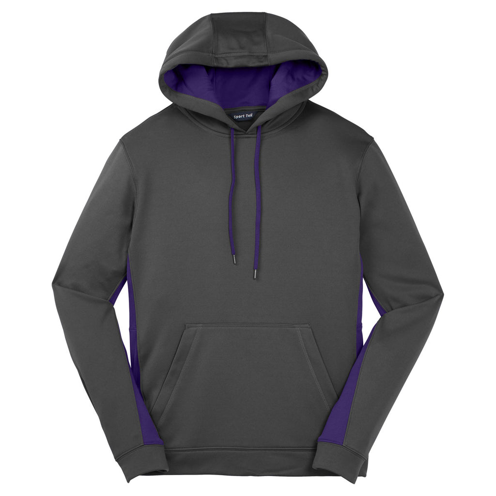 When the mercury goes down, your layering needs to go up. You know what we mean by layering, right? Take the Sport-Tek Men's Dark Smoke Grey/ Purple Sport-Wick Fleece Colorblock Hooded Pullover. This is a comfortable and durable layering item that you can use to gift your employees with warm and fashionable clothes to wear around the workplace. Just add your custom logo to the front and you've created something branded specifically to your company.Corresponding Women's Style:Sport-Tek Women's Purple/Dark Smoke Grey Sport-Wick Fleece Colorblock Hooded Pullover