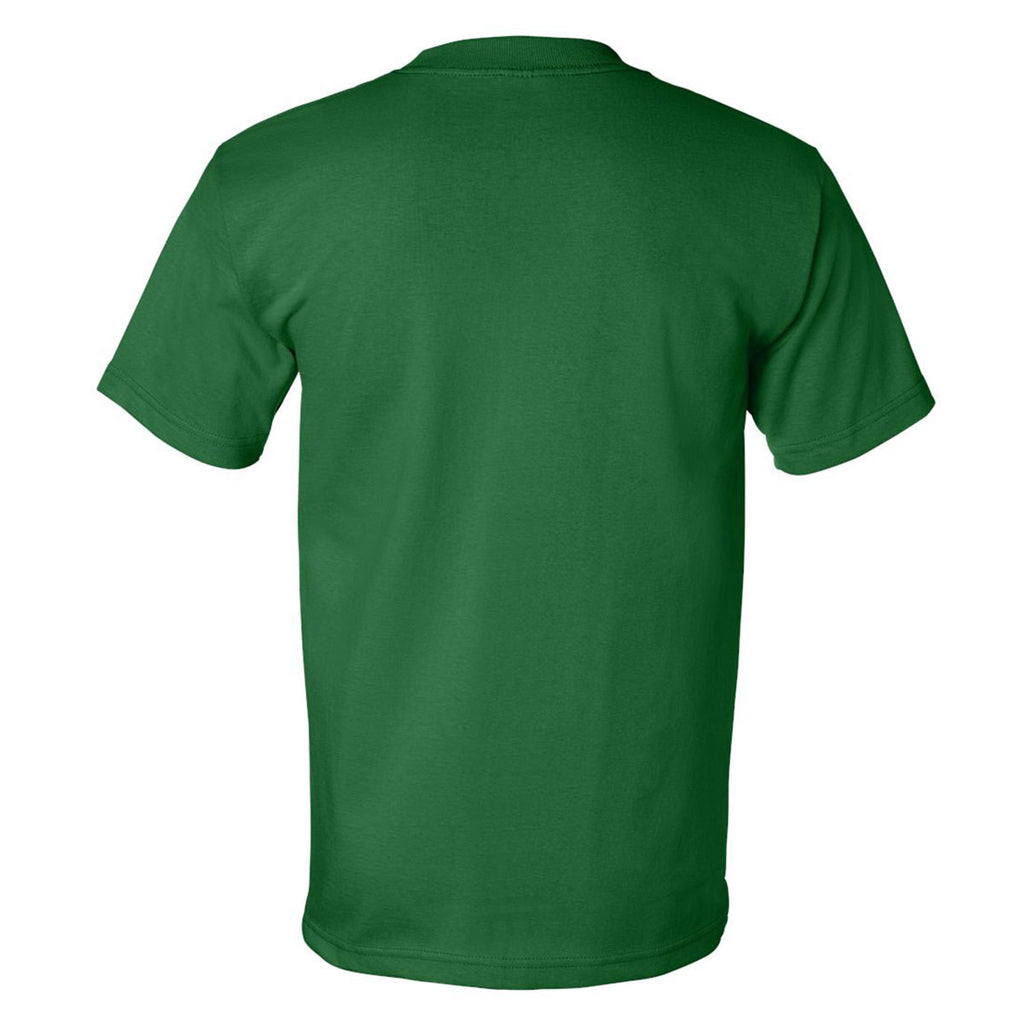The Bayside Men's Kelly Green USA-Made Short Sleeve T-Shirt is more than just a T-Shirt, especially with your company's custom logo right there on the chest. The wide collar as well as the double-needle stitched sleeves and bottom hem put this shirt a cut above the everyday T-Shirt when it comes to fashion, and it would be a sharp company uniform. Available in a wide range of colors, your logo would blend in well regardless of its design. Or you could order different colors to give your employees a full uniform wardrobe. This logoed shirt also would be practical for company events such as trade shows.Highlights