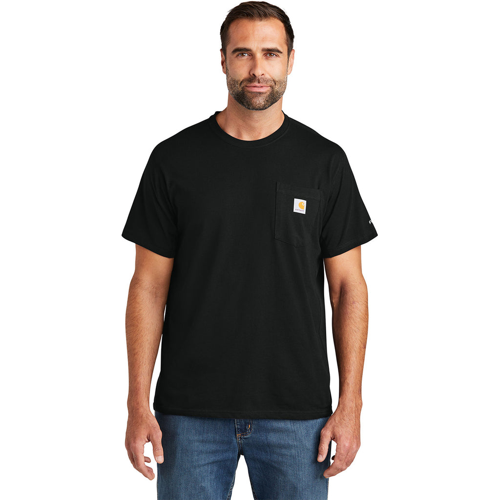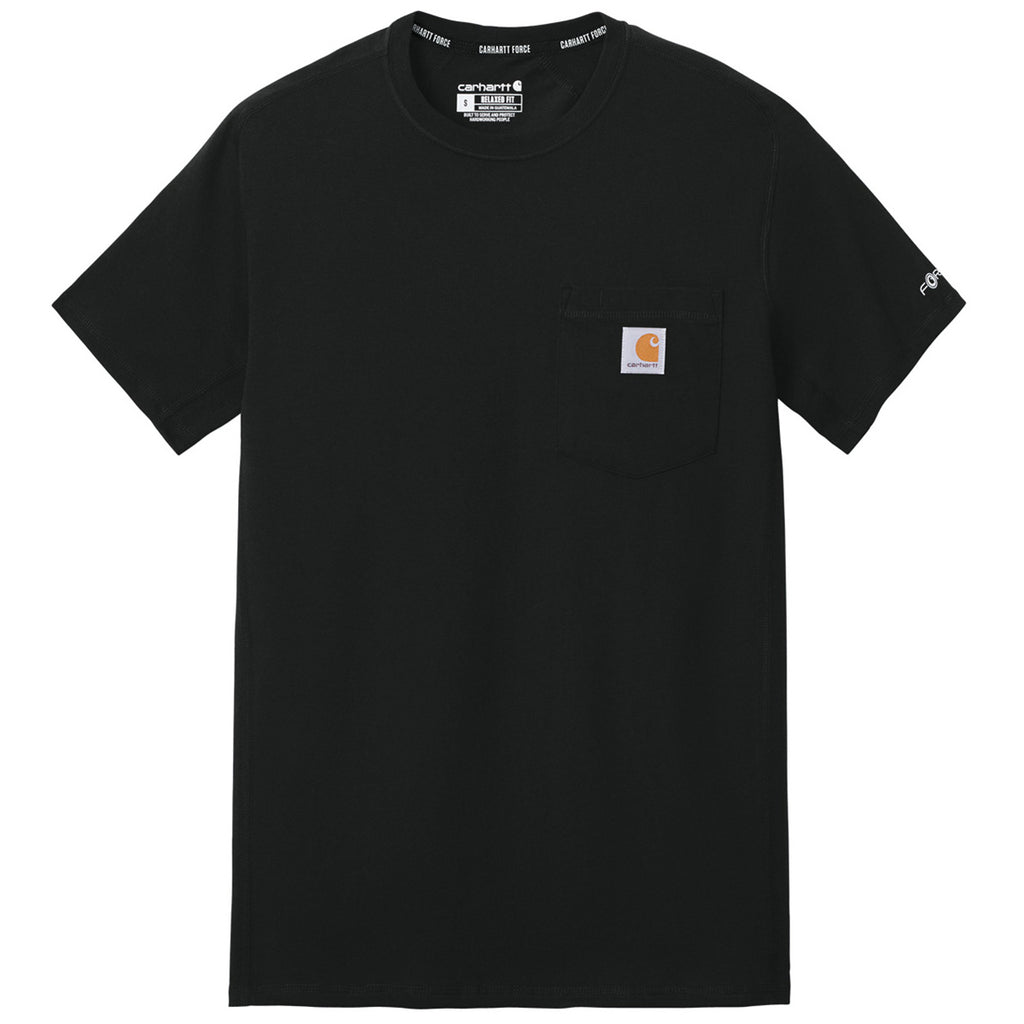 Be tough and comfortable in a custom Carhartt Men's Black Force Short Sleeve Pocket T-Shirt. This simple tee is made for those who work and play hard. The chest pocket is great for small tools and other needed items as you work outdoors, camp, hunt, fish, or whatever you choose. Place an order right away; these will go fast.This product can only ship within the United States and Canada.