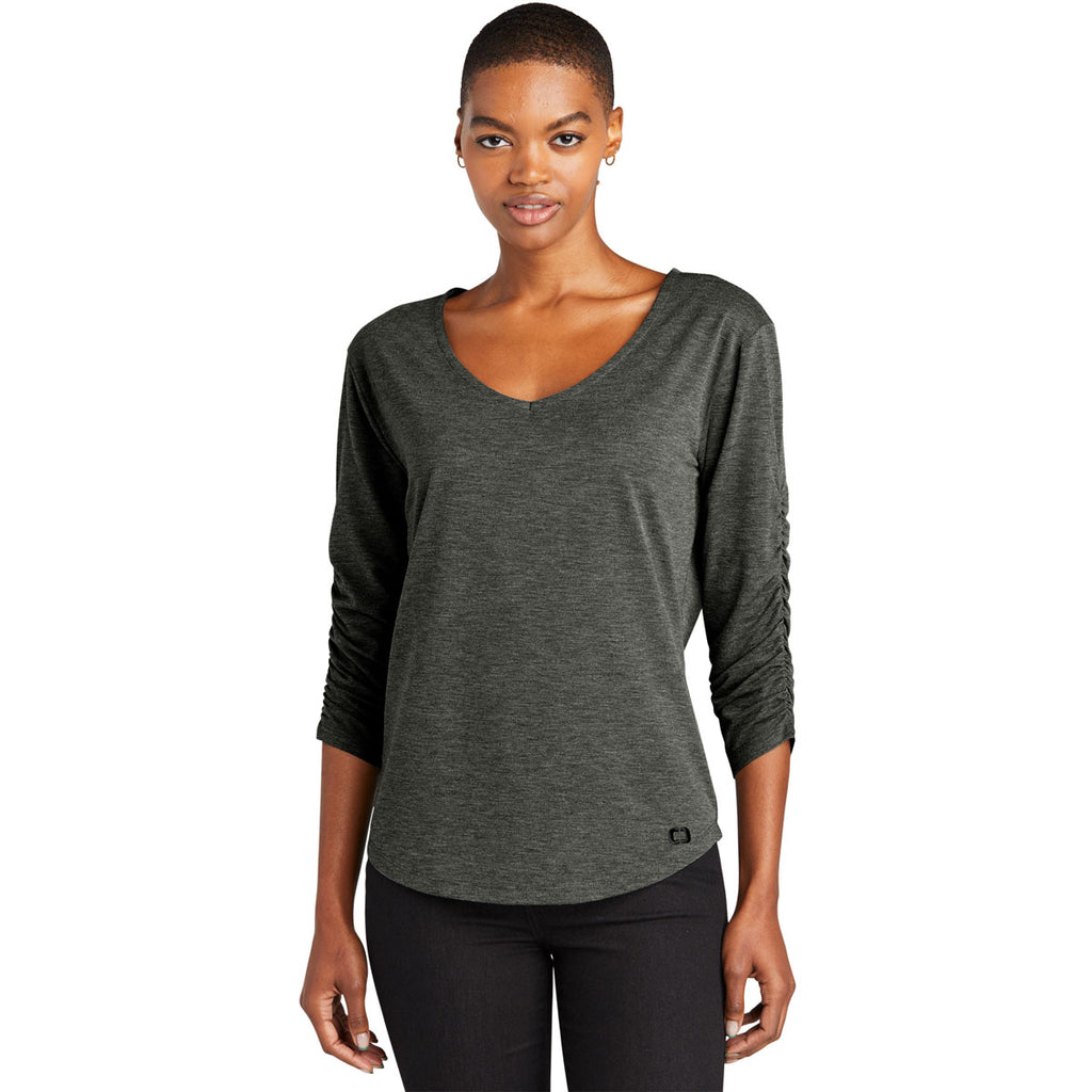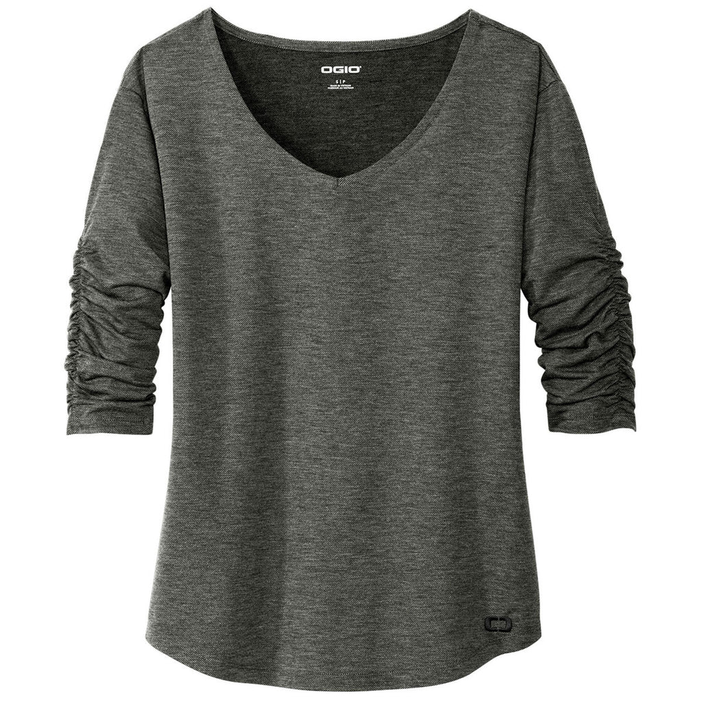 OGIO Women's Tarmac Grey Evolution V-Neck with custom embroidery is made to perform when you need it most. The cutting-edge style with a slight drop shoulder can be dressed up or down depending on your needs. Add a custom logo to this versatile V-neck and let your imagination go wild. Place an order today all allow your style to evolve.