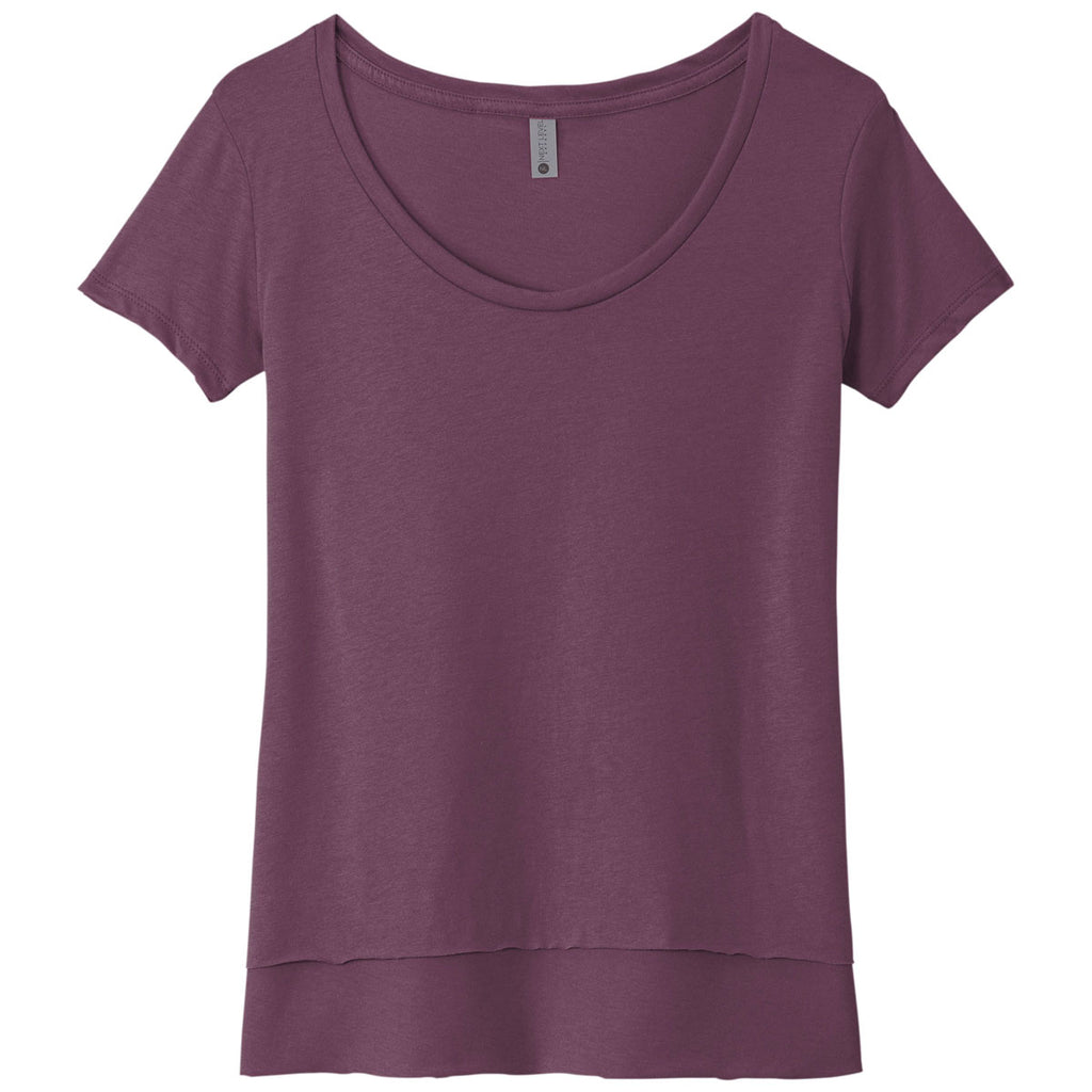 Amp up your tee collection with a custom Next Level Women's Shiraz Festival Scoop Neck Tee. This takes the simple tee to the nest level with a scoop neck cut that provides flair. Add a company logo to use this as employee apparel or for some special employee event used for team or company building. Try out a custom logo to use for a team, organization, club, or just to add to your own wardrobe. The poly and ring spun cotton blend is soft, comfortable, and wearable with rib knit scoop neck and a relaxed fit. The raw edge creates an exaggerated drop tail hem for extra coverage.Highlights