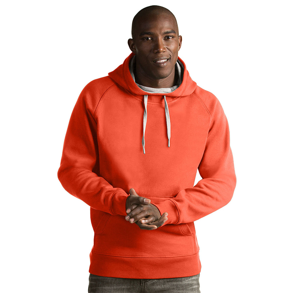 From the gym to the great outdoors, the custom embroidered Antigua Men's Dark Orange Victory Pullover Hoodie delivers superior performance in all types of climates. Moisture wicking technology quickly removes any discomfort to keep you feeling energized during extended backpacking excursions. Cotton and polyester combine to produce a durable fabric that retains body heat during cold weather outbreaks. Add your company logo on the large imprint area to make your brand better known at industry trade shows and events. Great for long travel days, the Antigua Victory Hoodie is a comfortable and cost effective option for your next custom apparel purchase.Highlights