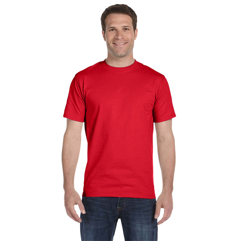 Custom logoed Hanes Men's Athletic Red 6.1 oz. Beefy-T will be an instant favorite at all your recruiting events. Available in 44 different colors, your screen print will pop to grab the attention of passersby. Made of 100% ringspun cotton, the tag free neck label and cover seamed lay flat collar make this t-shirt the ultimate in comfort. Ideal as employee apparel for those that are working hard for the company or as a form of recognizable advertising at recruiting events. These t-shirts are so comfortable people will want to wear them daily, even outside of work. Place your order today to be prepared for the next big event.Highlights