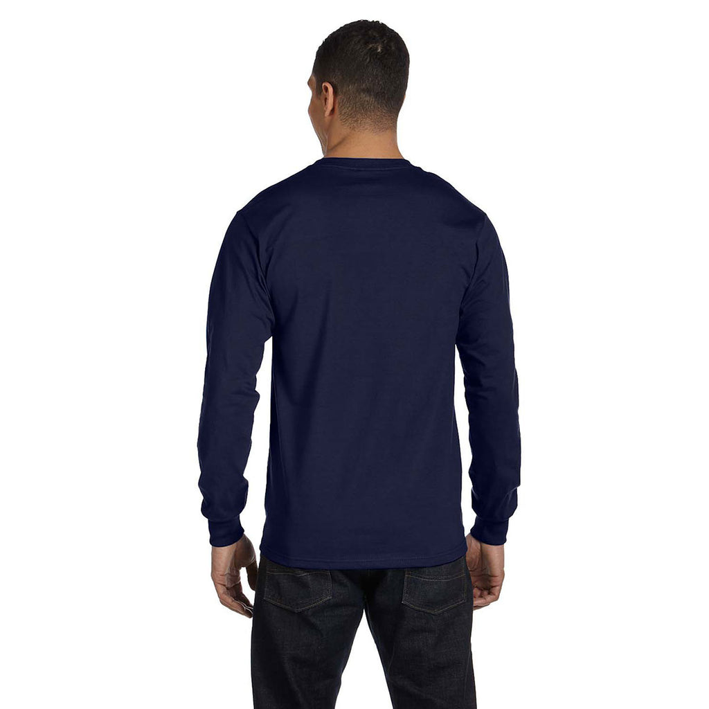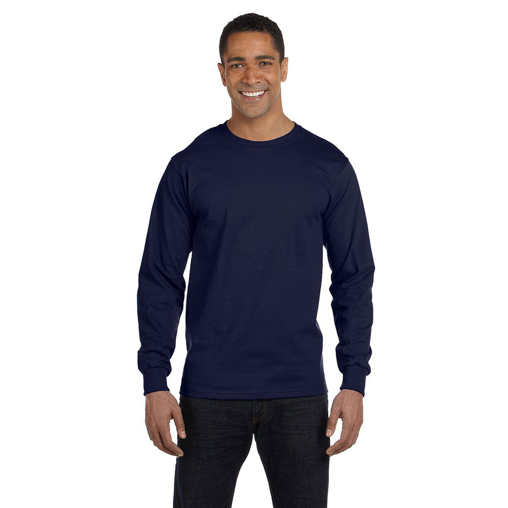 Add a screen print to this Hanes Men's Navy 6.1 oz Long-Sleeve Beefy-T to create custom employee apparel that will be an instant hit. Available in 23 different colors, one will be sure to compliment your custom logo. Created from 100% ringspun cotton with double-needle stitching throughout, the lay flat collar and tag-free label will make this a comfortable choice for everything from a trade show to golf events. Great for layering or wearing alone, this custom long sleeve tee will meet all your needs, whether they are focused around your company, a team, or just to beef up your wardrobe.Highlights