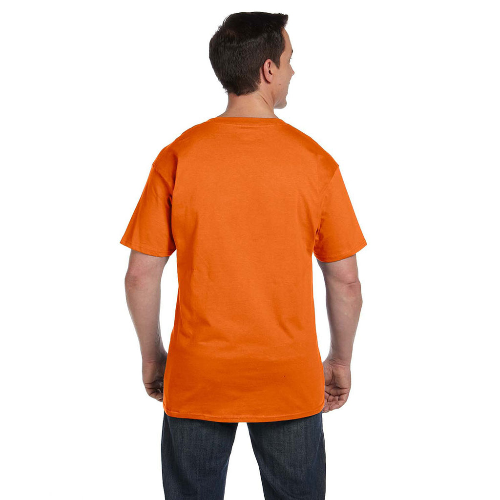 Custom embroidery meets classic design in the Hanes Men's Orange 6.1 oz. Beefy-T with Pocket. Everyone enjoys wearing a well-made, soft cotton t-shirt. Having a closet filled with custom embroidery t-shirts makes it all the more special. Create a batch of custom pocket tees with your company or team name to wear, display, or give away at a trade show or recruiting event. Perfect for layering with other Hanes products or to wear alone, the simplicity makes this t-shirt fully customizable in 22 different colors. The ways in which these t-shirts can be used is only limited by your imagination, the addition of the chest pocket also makes them functional in carrying the small important items you may need. How many will you order?Highlights
