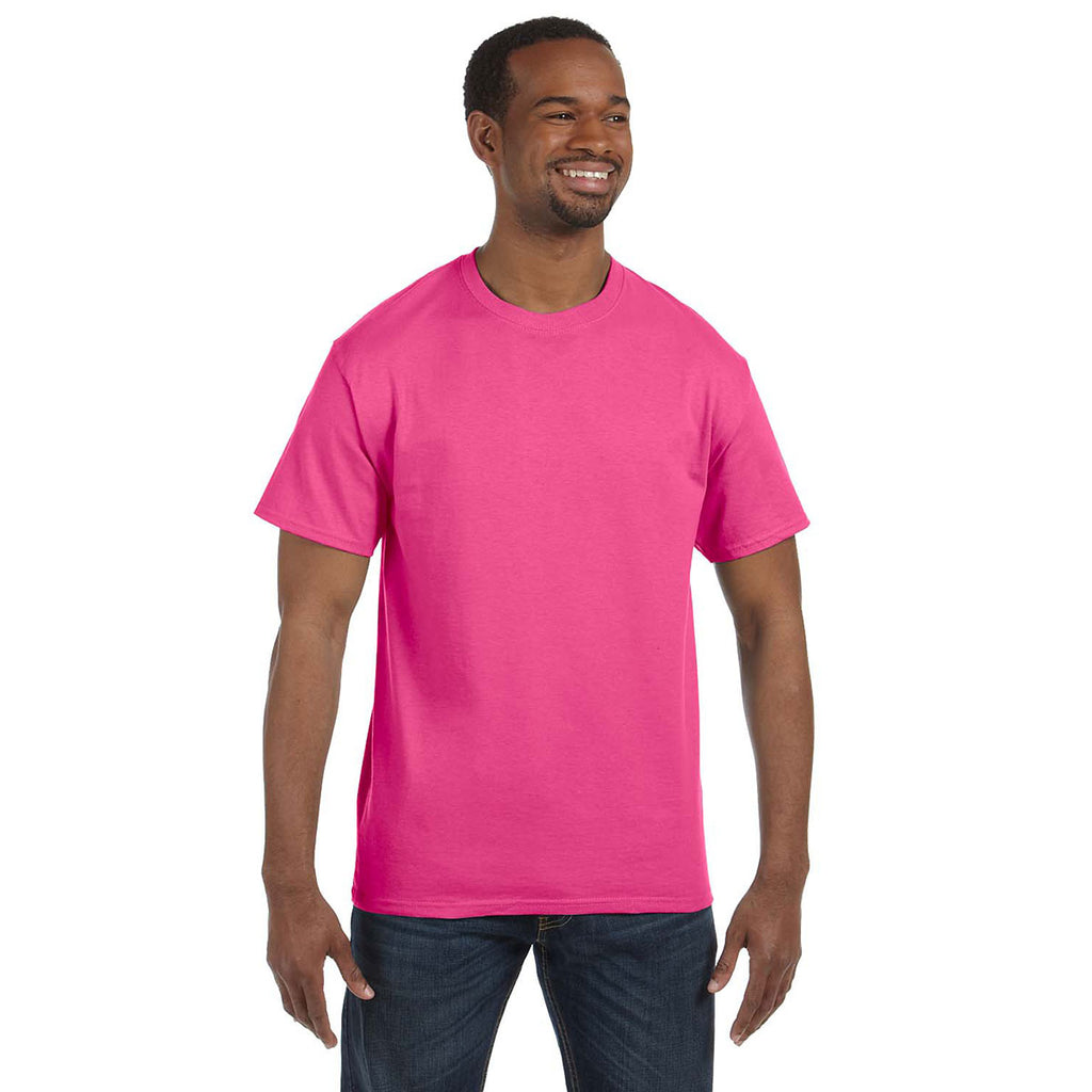 Custom logoed Hanes Men's Wow Pink 6.1 oz. Tagless T-Shirt will be an instant favorite at all your recruiting events. Available in 47 different colors, your screen print will pop to grab the attention of passersby. Made of 100% ComfortSoft cotton, the tag free neck label and lay flat collar make this t-shirt the ultimate in comfort. Ideal as employee apparel for those that are working hard for the company or as a form of recognizable advertising at recruiting events. These t-shirts are so comfortable people will want to wear them daily, even outside of work. Place your order today to be prepared for the next big event.Highlights