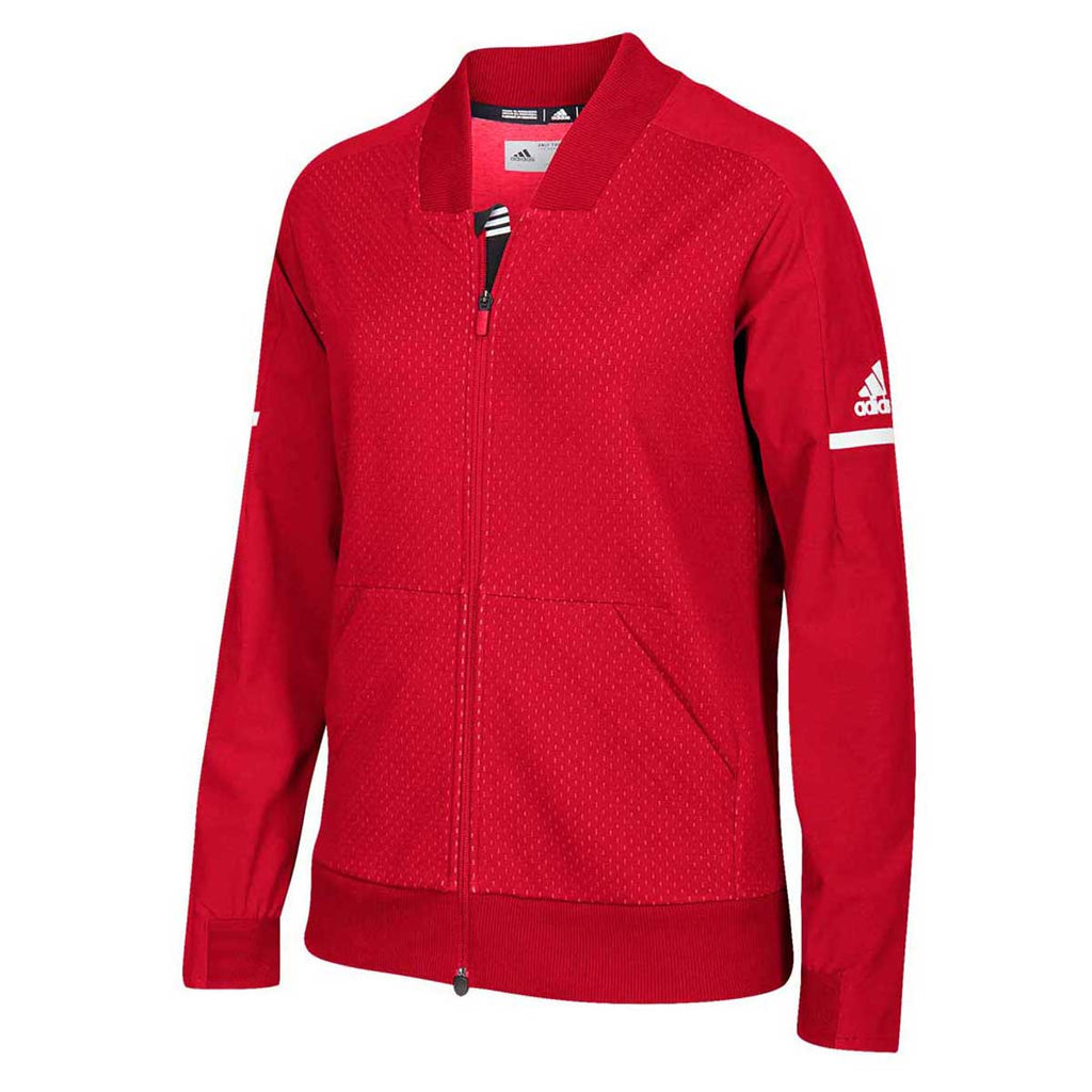 Head outdoors in a custom designed adidas Women's Power Red/White Squad Bomber with your choice of company or corporate logo. The recycled polyester and cotton mesh blend jacket offers polyester rich elastane sleeves that are water resistant and comfortable to wear. The regular fit means this jacket is easy to layer of a tank or tee and can be used as part of a uniform or as warmup gear for the next team event. The type of jacket everyone imagines when thinking of athleisure wear this bomber makes a great employee gift for any occasion. Place an order soon to add these bombers to your wardrobe.