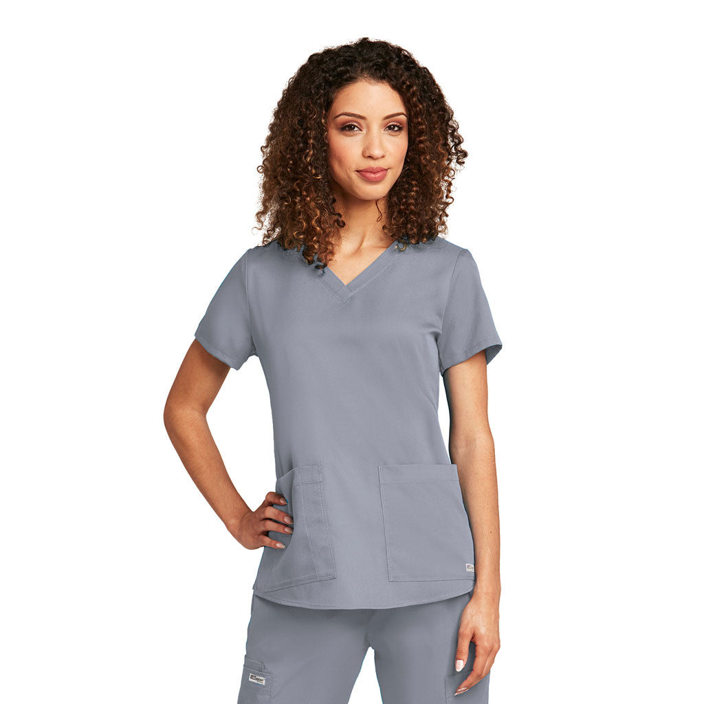 Simply looking at it, you might assume that this Grey's Anatomy Women's Moonstruck V-Neck Top has everything you need, but then you look closer. You see the three pockets. You see that the fabric is a more work-ready polyester. You see the comfortable and stylish v-neck design. Then it hits you: this has everything you need and even more. Not only does this top have what you need for a comfortable day at work, but it has what you need to stay comfortable well until the shift is over and you’re ready to relax. Attach your cutom logo to create recognition for your hospital or clinic.Highlights
