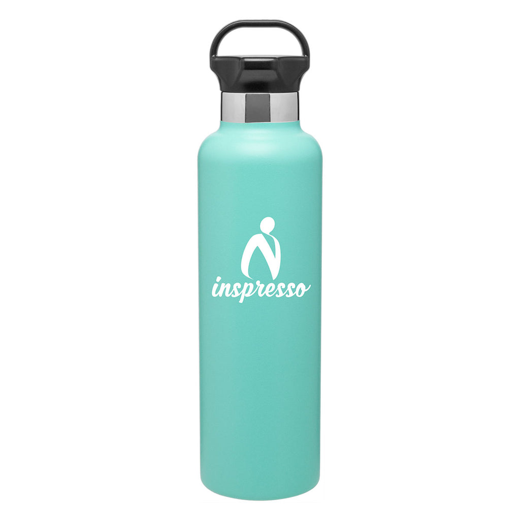 Why name the H2Go Matte Mint Ascent Stainless Steel Bottle 25 oz the "Ascent"? Maybe it's because it's a bottle that goes great with you as you ascend a hill on a hike-it does, after all, feature a cap loop for that very purpose. But we think it's more about ascending to a new level of bottle-ness: there is an insulated lid here, 18/8 stainless steel construction, and will even keep your drink cold or hot for hours and hours. That's not just something any old bottle can do. And with your event, business, or team logo on this bottle, you can ascend to a whole new level of branding as well.