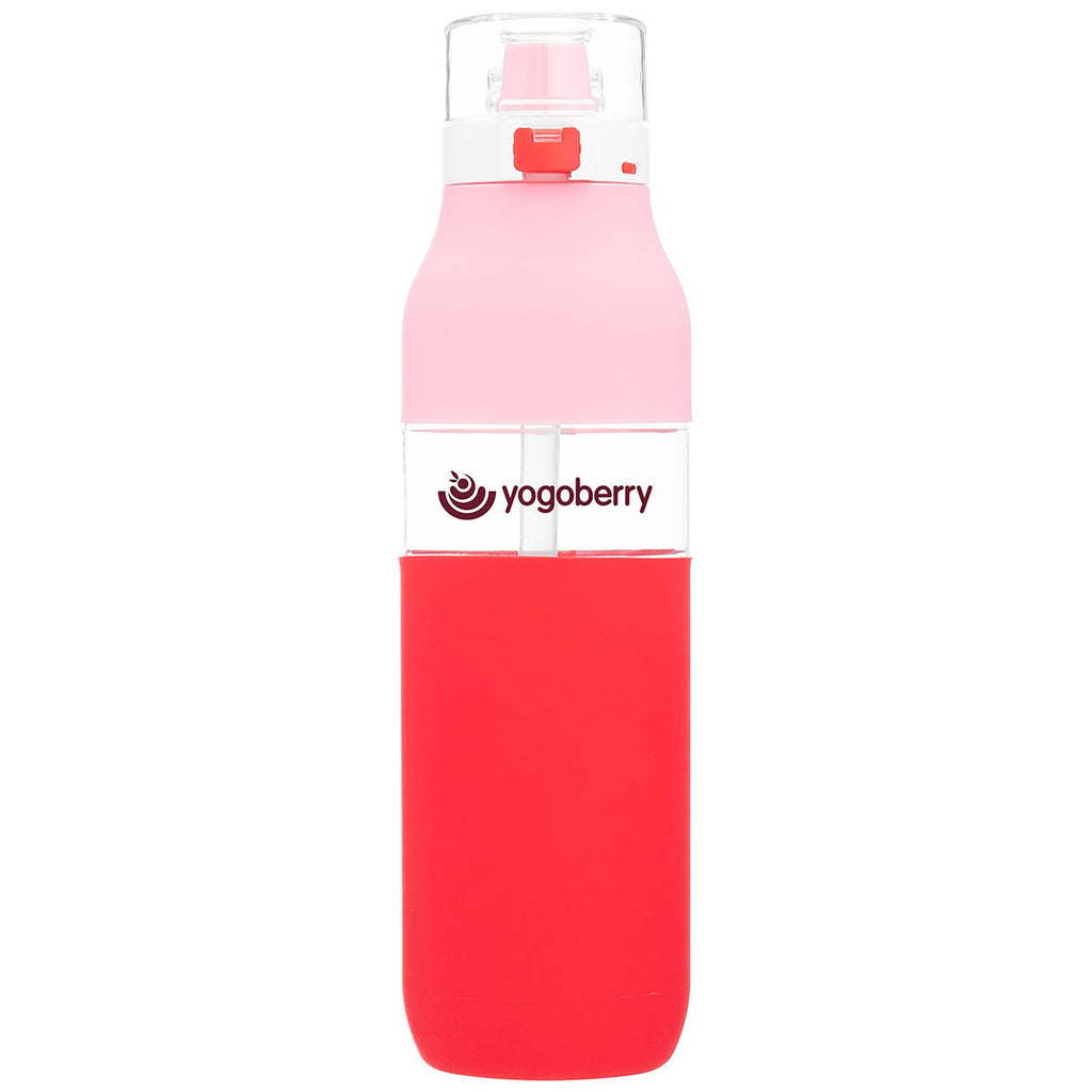 The H2Go Strawberry 25 oz Void Bottle features a contemporary design that will continually turn heads in a crowd. Take your brand to the next level by adding your company's custom logo to this water bottle, which includes unique extras like a silicone drinking spout, an inner soft straw, and dual silicone accents.