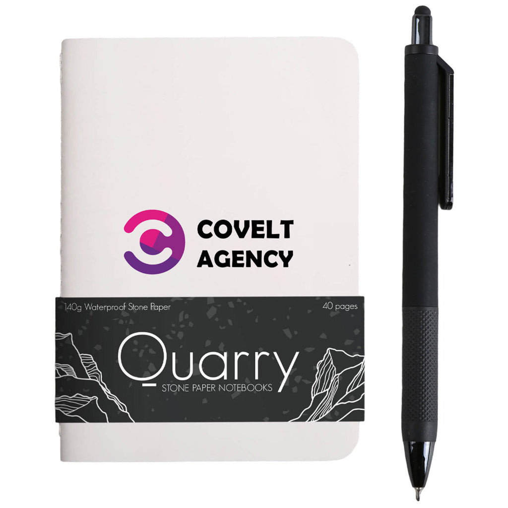 Add a corporate logo to the unique Handstands White Quarry Stone Paper Pocket Notebook for a fun option for taking notes. This pocket-sized notebook is great for people working in the field with waterproof pages and an innovative construction for durability. Sustainable and reliable, this is a must-have. Order several today.The minimum order for this product is 50 pieces.