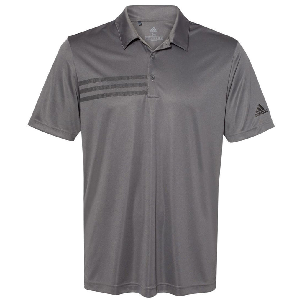 Enjoy a unique custom look with an embroidery Adidas Men's Grey Five/Black 3 Stripe Chest Polo. Perfect as corporate apparel when paired with a jacket or vest, this polo is made of 100% recycled polyester jersey. This means you can look great and help the environment in the traditionally styled polo with hydrophilic finish and a UPF rating of 50+. The simple design is enhanced with three stripes on the right side and a open hem with three button placket. Add a custom logo to use these polos as employee apparel that makes a statement or as employee gifts that will be an instant hit.