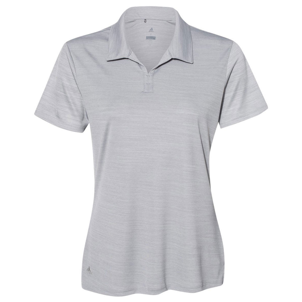 Make a custom statement with the Adidas Women's Mid Grey Melange Sport Polo in a range of colors and sizes. Created from 100% recycled polyester with striated heather interlock, this polo is a must have for both home and office. Add a custom logo to use as employee apparel that will look good and be easy to wear during long work hours. A self collar with fashion V-neck placket adds a bit of style to the polo design and the contrast Adidas logo on the right hip screams quality. A corporate embroidery allows this to be an option for corporate apparel whether paired with a jacket or worn alone as a statement piece.