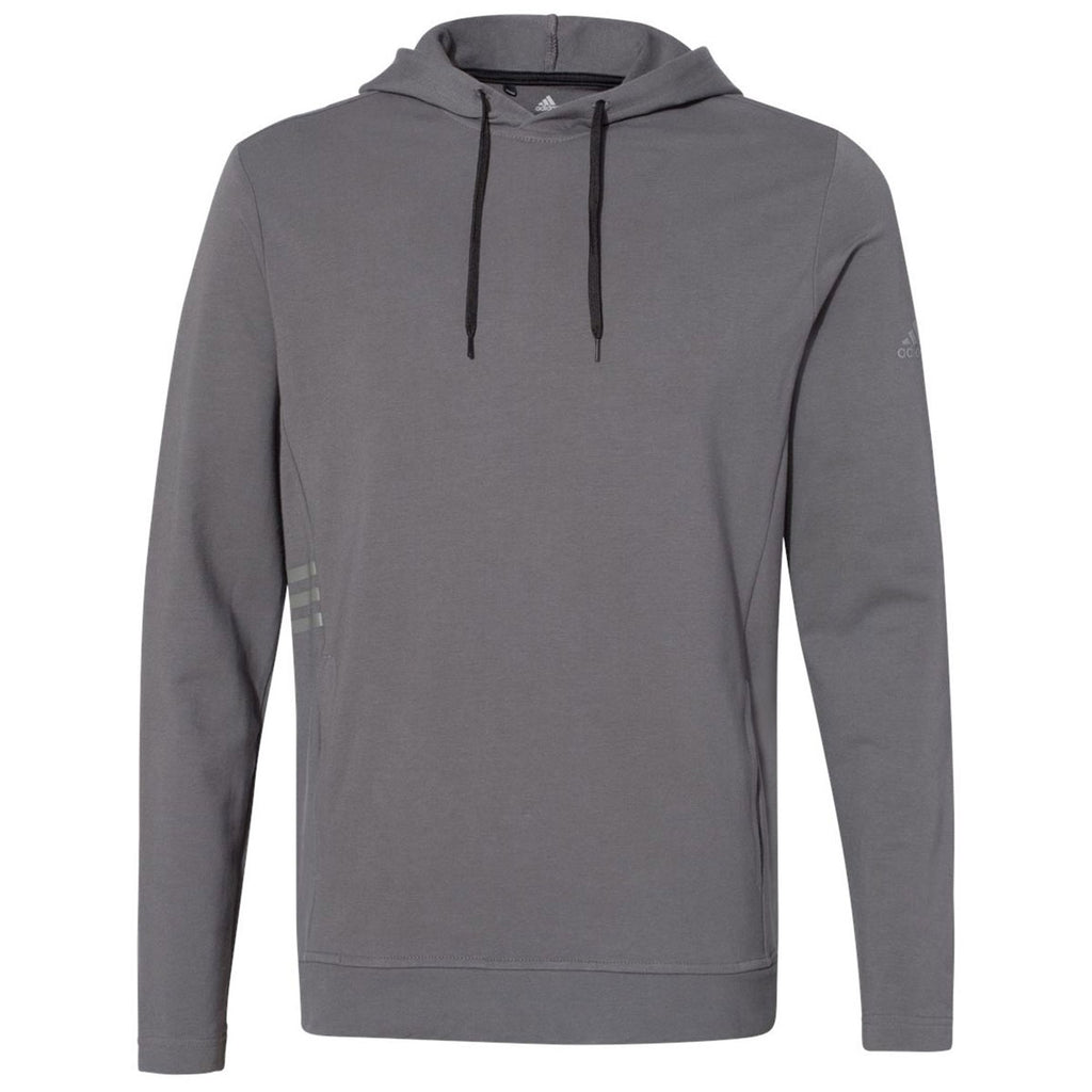 Add a screen print to the Adidas Men's Grey Five Lightweight Hooded Sweatshirt to make a statement whether working out or heading out to enjoy the day. The perfect option as athleisure apparel for those that enjoy a morning run or hitting the machines at the gym, this cotton, elastane French terry blend is lightweight and comfortable. Contrast striping on the right body adds a bit of flair to this two front pocket sweatshirt that makes a wonderful employee gift or just an addition to a personal wardrobe. Add a custom logo to use as employee apparel or create team gear that will be treasured.