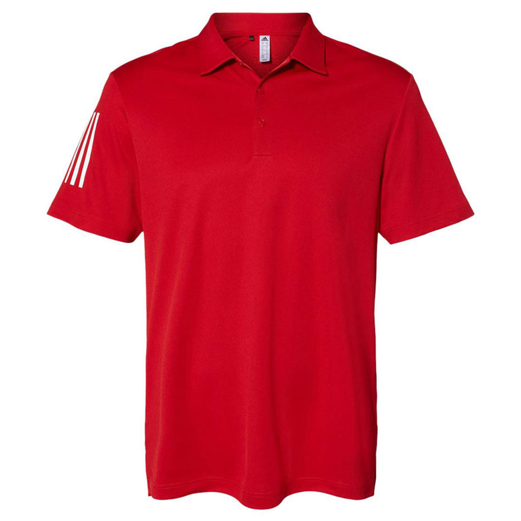 Add embroidery to the Adidas Men's Team Power Red/White Floating 3-Stripes Sport Shirt for a professional, high-end look that will turn heads. A company logo turns this sport shirt into an excellent uniform top or employee apparel. Made of 100% recycled polyester this sport shirt will look great whether paired with a sports coat for a professional conference or worn alone to hit a few balls on the driving range. Made with a hydrophilic fabric finish this shirt will keep you dry when you are working up a sweat. Your custom logo will stand out on the sport shirt in the color of your choice.